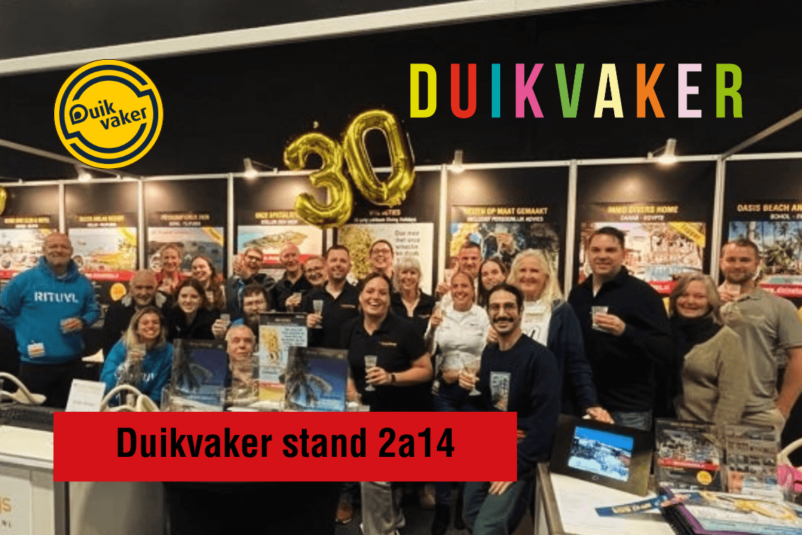 Diving Holidays bestaat 31 jaar en komt naar de beurs! Op zaterdag 31 januari en zondag 1 februari 2026 vind je het Diving Holidays team zoals altijd weer op de Duikvaker. In hal 2 hebben wij dit jaar een extra grote stand. Vanuit de hele wereld vliegen resort- en duikcentrum eigenaren in om samen met ons jullie informatie uit eerste hand te geven. Hoe leuk is het om hun eigen duikervaringen en belevenissen te horen! We nemen dit weekend natuurlijk ook weer de beste aanbiedingen met ons mee!