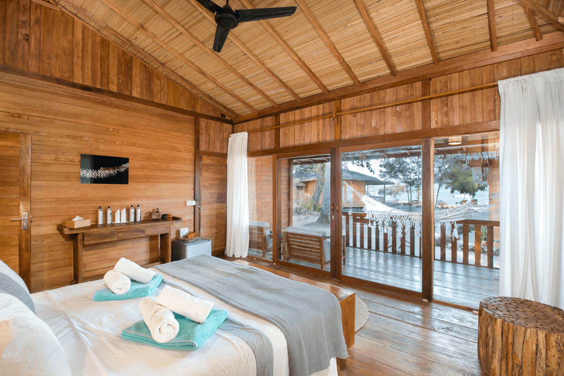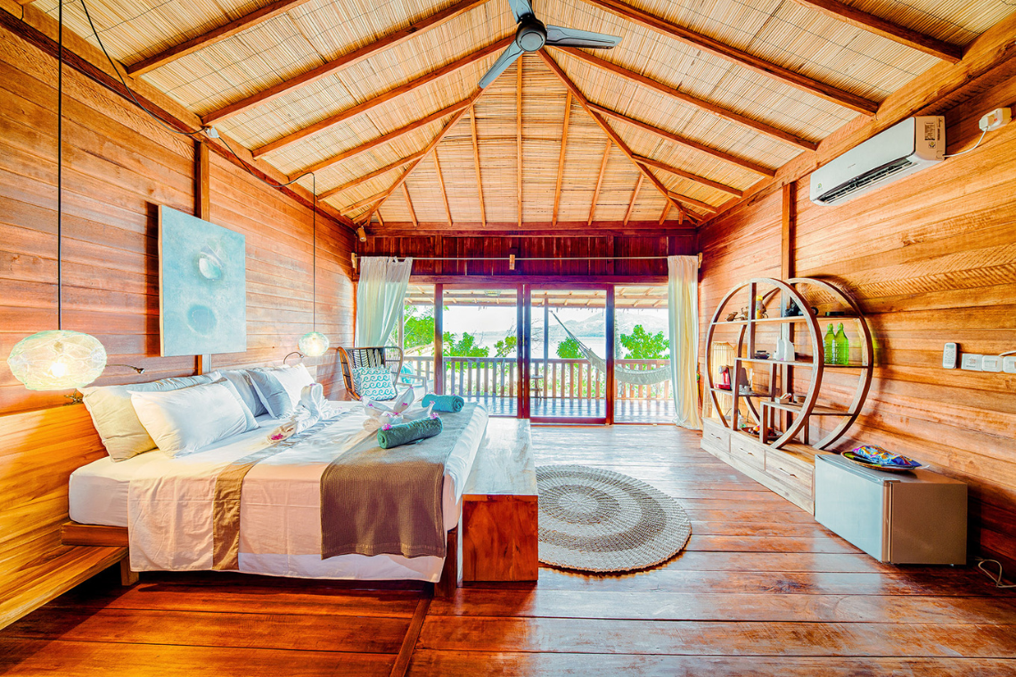 Deze bungalows van 42m2, liggen of direct aan het strand of iets verder van het strand in de tuin, maar zeezicht is hier gegarandeerd door de prachtige hoge ramen die via de veranda uitzicht bieden op Bunaken National Park en de Noord Sulawesi kust.