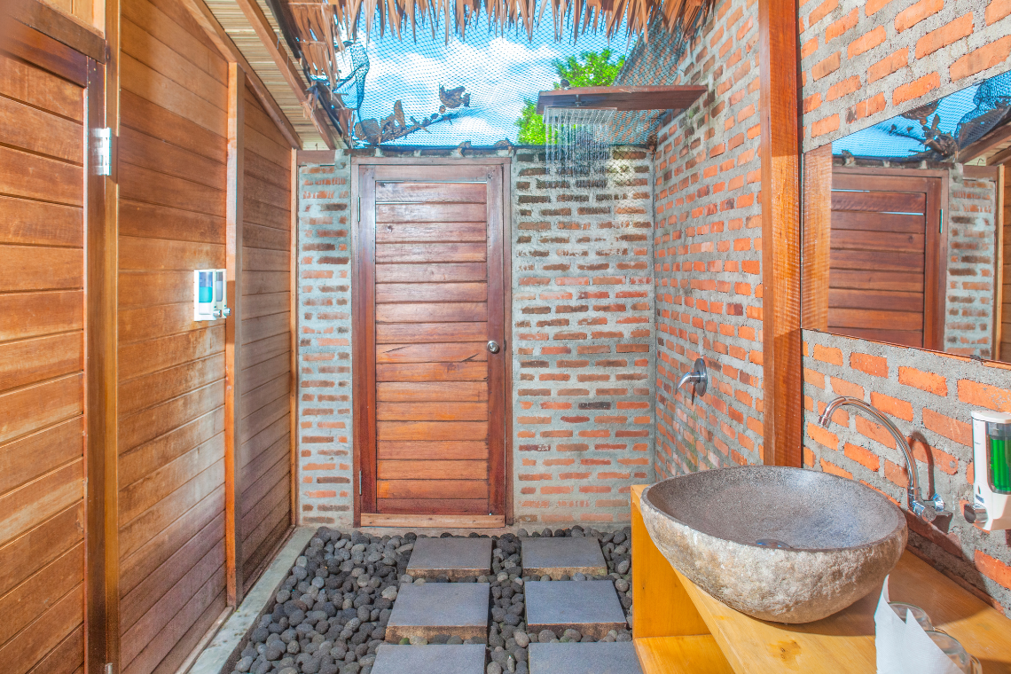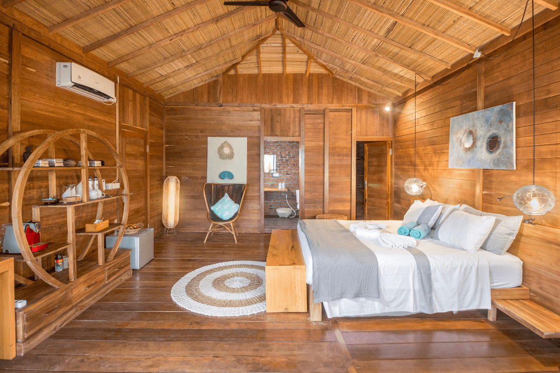 De bungalows beschikken over een groot tweepersoonsbed, een ruime semi-open badkamer met douche, een inloopkast, mini bar en muziek installatie maken deze bungalow compleet.