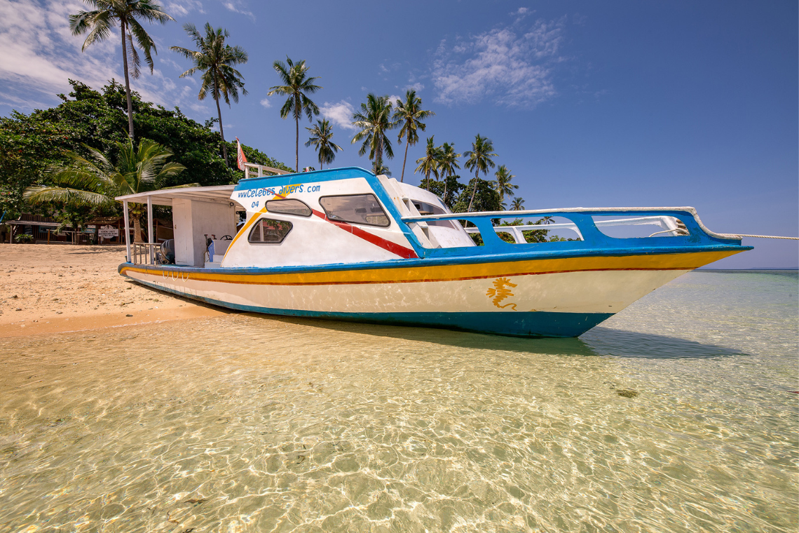 Celebes Divers beschikt over traditionele fiber glas boten, die je in alle comfort naar de duikstekken brengt. De boten beschikken over een zonnedek, maar ook een binnenruimte als je wat minder zon wilt en een toilet. Ook is er een zoetwater bak aan boord voor het spoelen van camera apparatuur.
